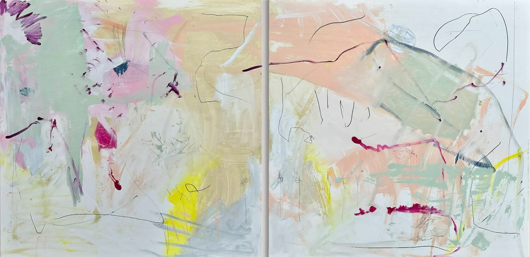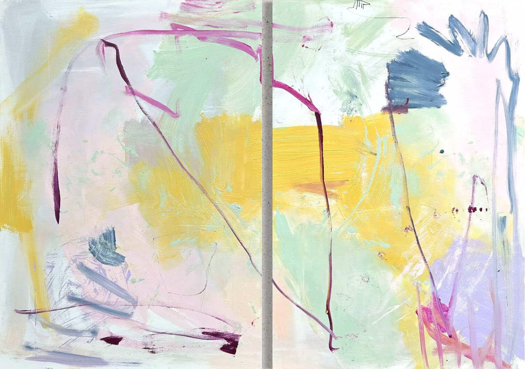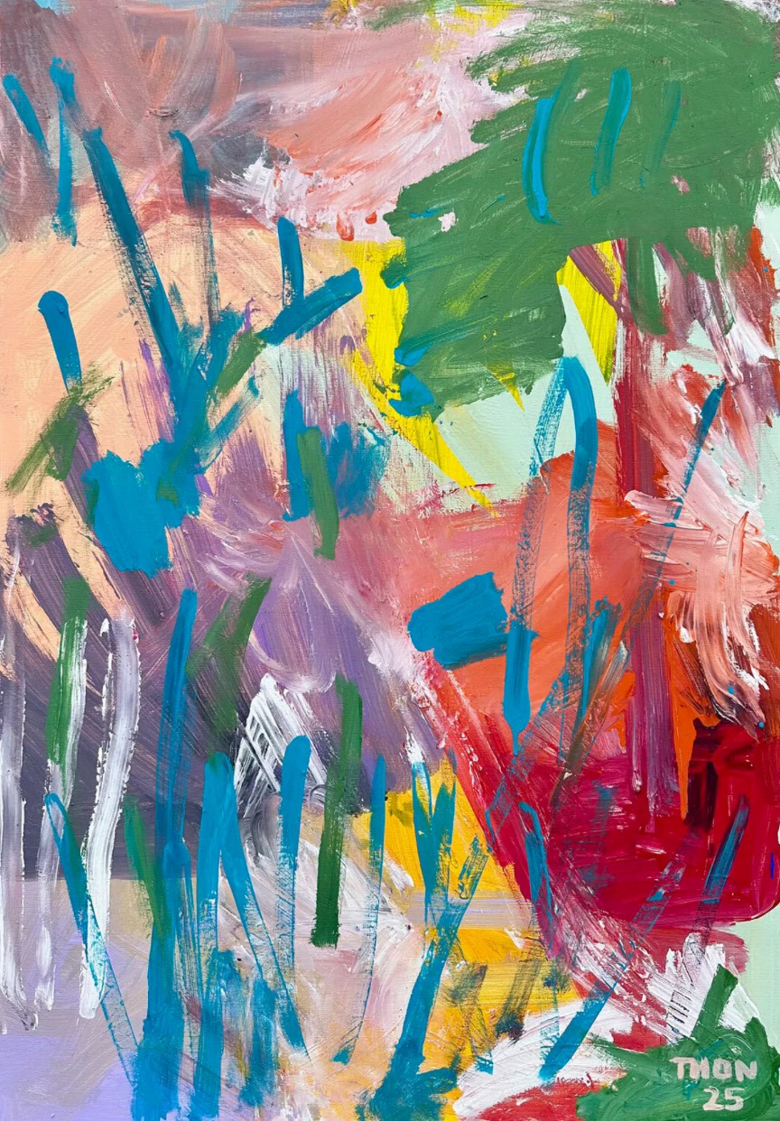 Some of my works emerge from a place I call an “inner landscape.” It is a space within me that is not visible, but tangible. A place where one can dance, cry, feel free, let go. There, I am entirely myself, without mirrors, without expectation, without observation or judgment. Through painting, this space becomes visible; it takes on form, color, and depth.
